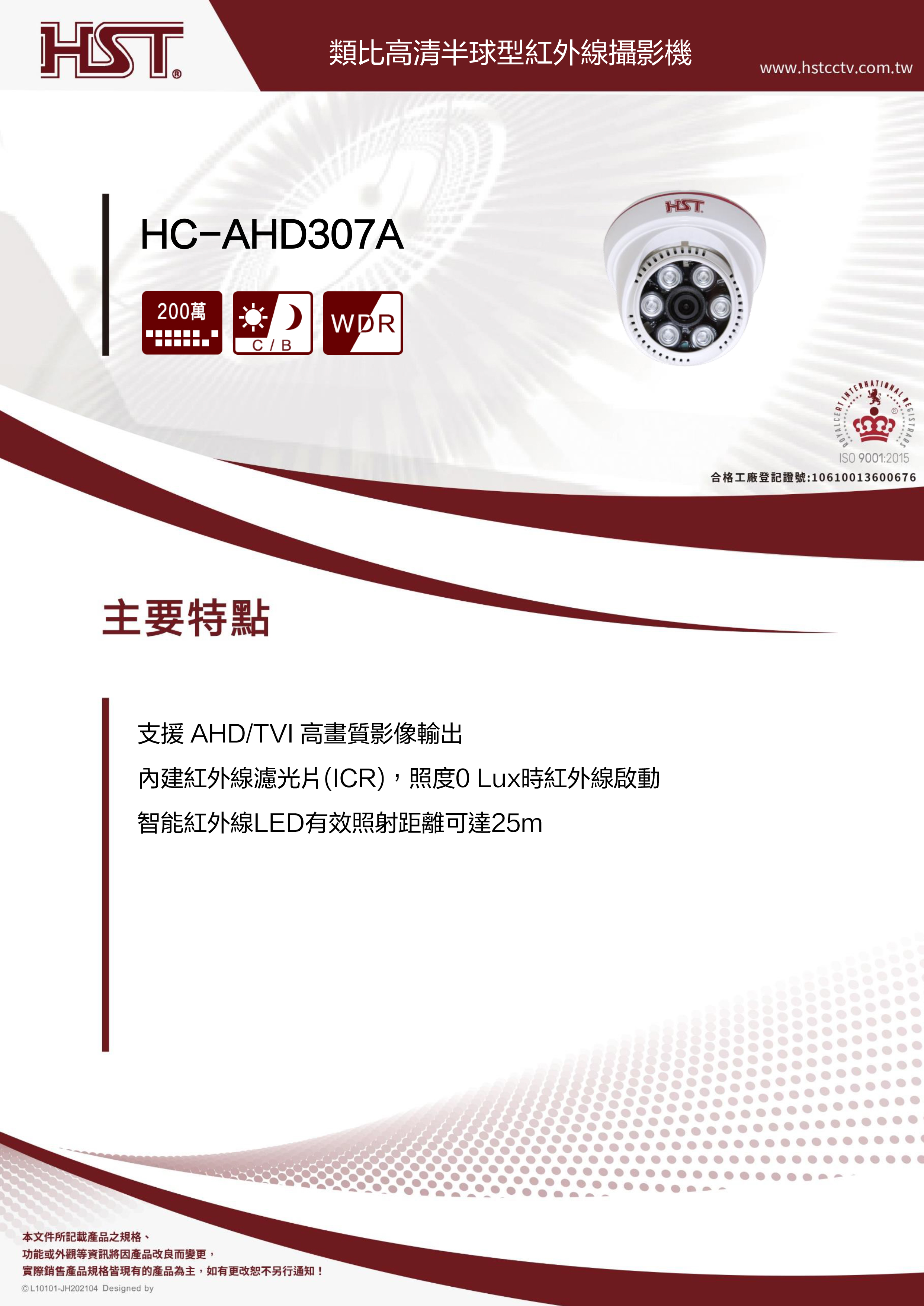 HST HC-AHD307A 類比高清半球型紅外線攝影機