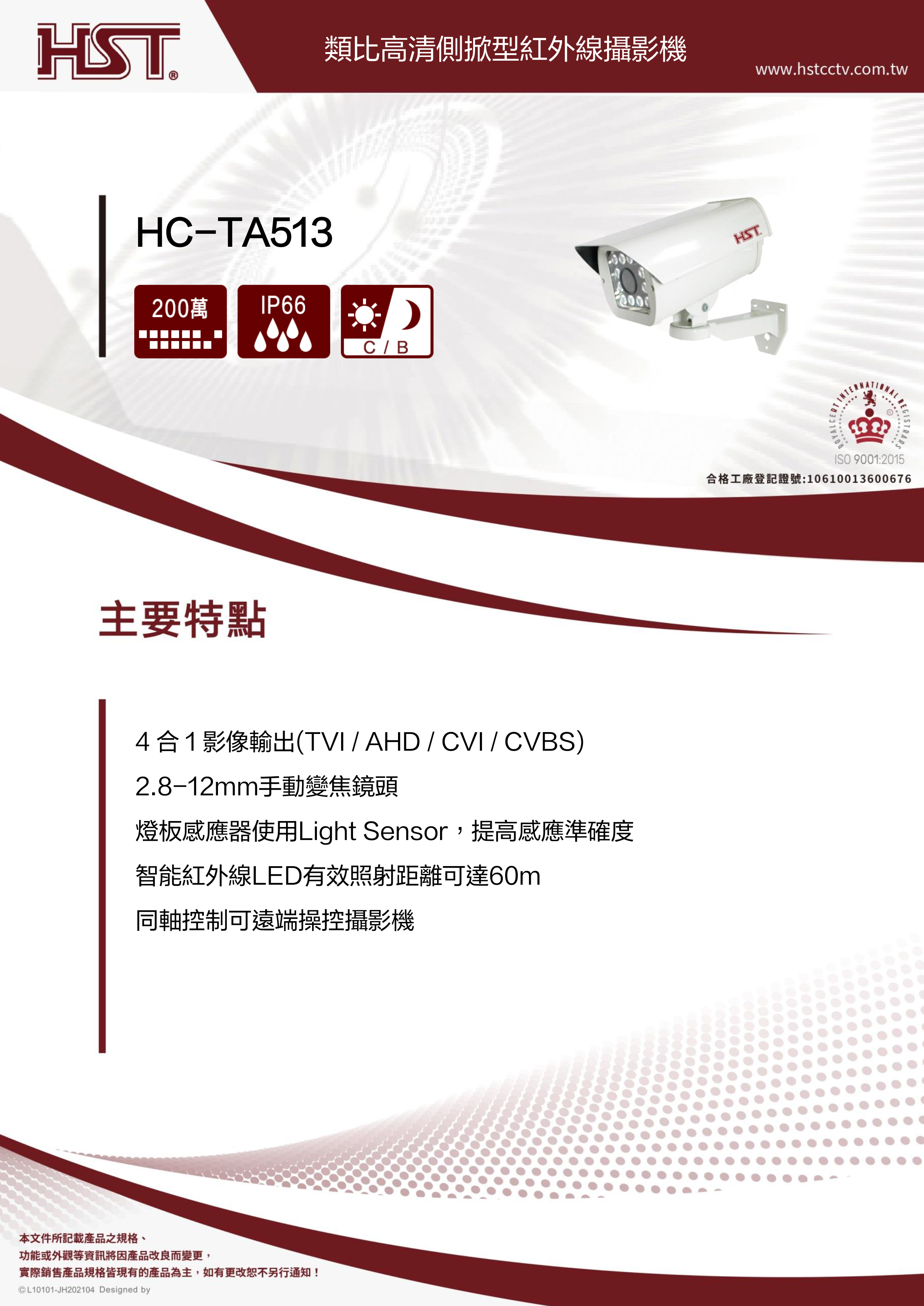 HST HC-TA513 類比高清側掀型紅外線攝影機