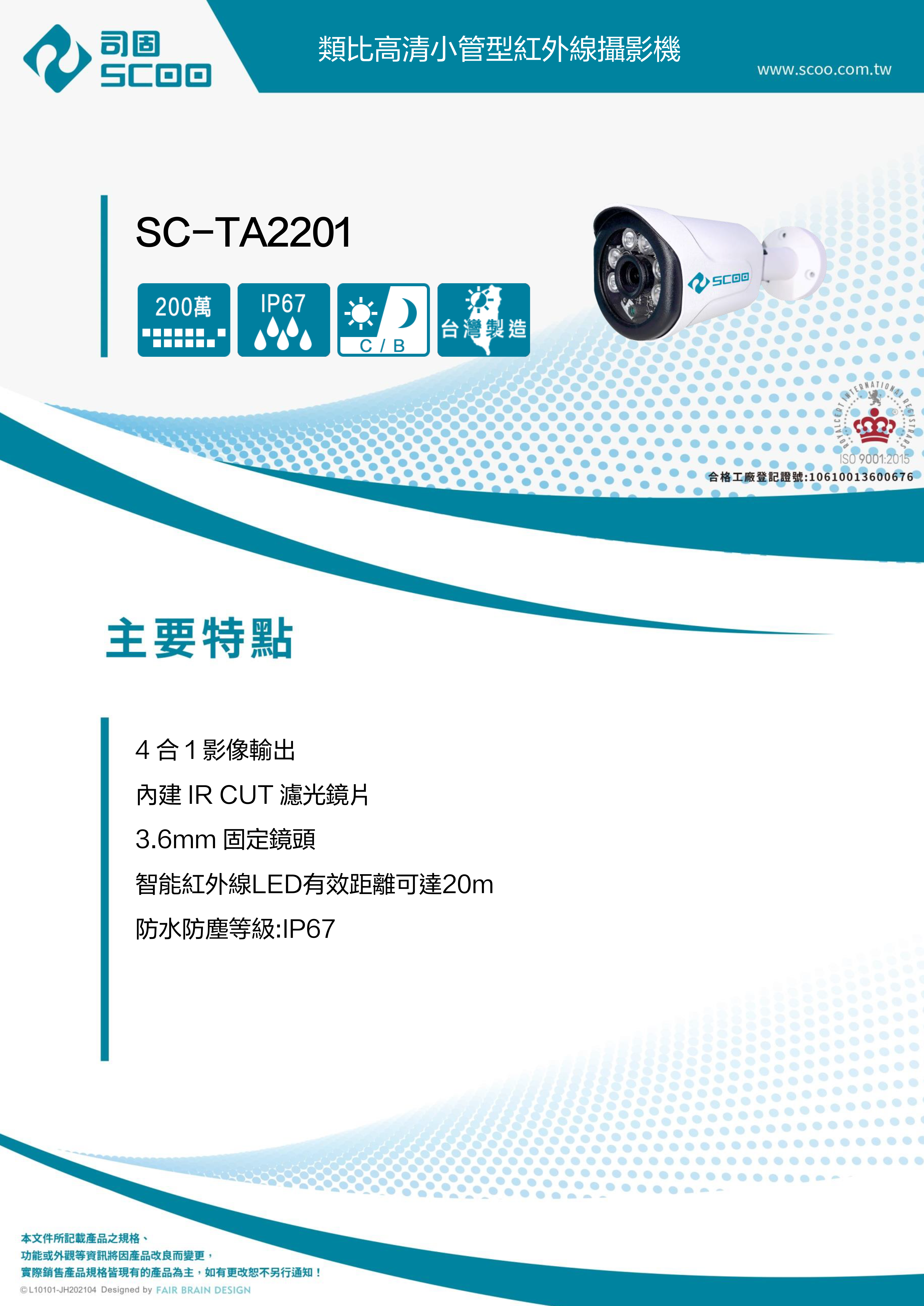 SCOO SC-TA2201 類比高清小管型紅外線攝影機